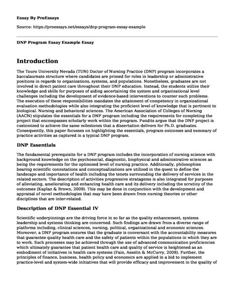 Read Online sample essay for dnp program Doc